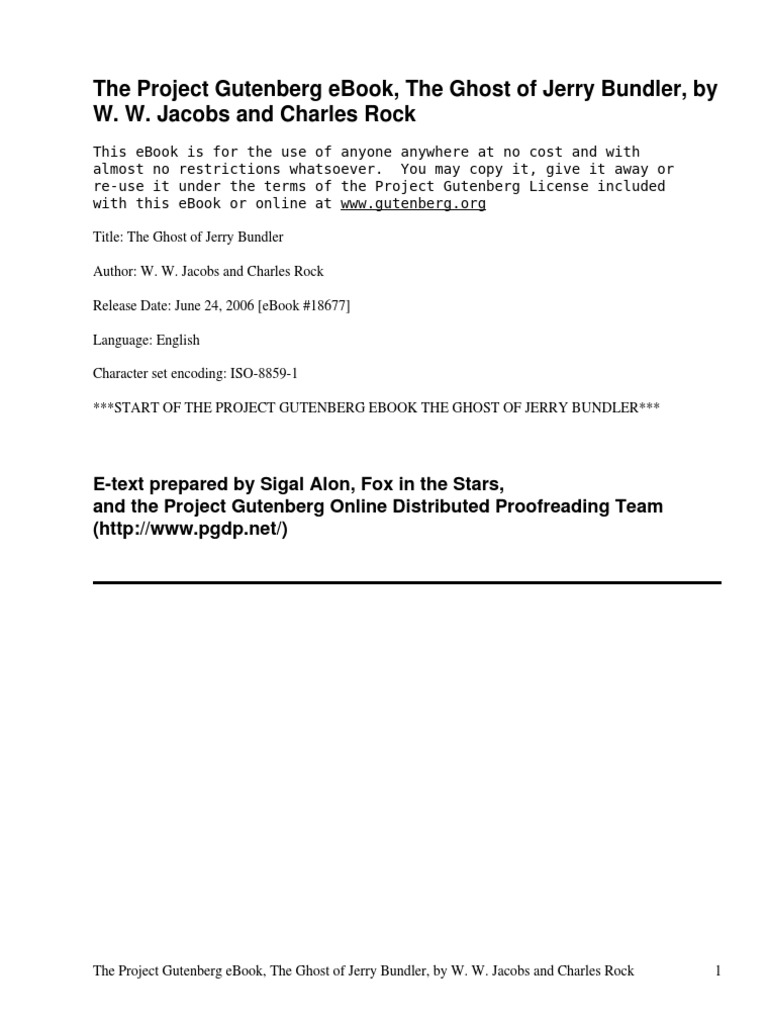 The Ghost Of Jerry Bundler By Jacobs W W 1863 1943 Pdf Project Gutenberg Public Domain