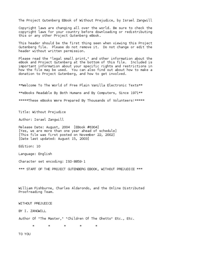Without Prejudice By Zangwill Israel 1864 1926 Pdf Project Gutenberg E Books